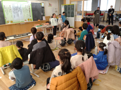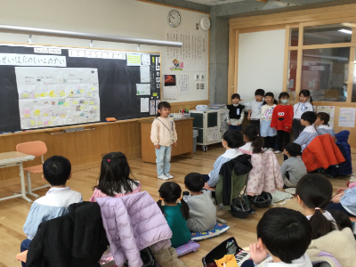 2月4~5日、村内4園の年長さんを小学校に招待し、生活科の学習で「1年生は楽しいよの会」を開きました。