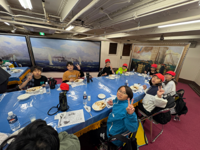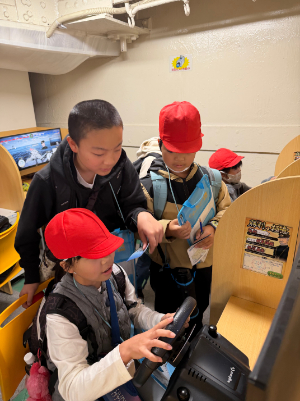 記念艦三笠では、船内を班行動で見て回りました。時間になる前に、「残り何分だからそろそろ戻ろう」などと声を掛け合いながら行動できていました。