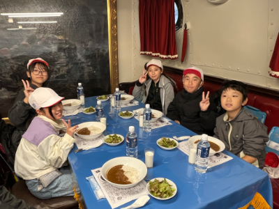 続いて向かったのは、記念艦三笠です。ここでは、横須賀にちなんだ「海軍カレー」をいただきました。当時栄養バランスがよい食事をということで、毎週金曜日に出てきていたとされるカレー。牛乳とサラダと一緒に、三笠のなかでいただくという貴重な経験をしました。