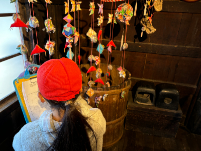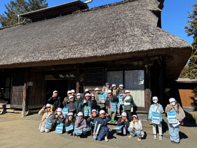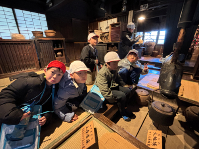 社会科の学習で、忍野村にある「榛の木資料館」へ見学に行ってきました。茅葺き屋根の建物。一歩足を踏み入れると、そこには、今の私たちの暮らしとは全く違う「昔の世界」が広がっていました。子どもたちは、部屋の真ん中にあった「いろり」に驚いていました。 「ここで料理をしたり、暖まったりしていたんだね。」と、昔の暮らしを想像しながら、熱心に見学していました。資料館には、昔の人たちが実際に使っていた道具がたくさん展示されていました。今の家電製品はボタン一つで動きますが、昔の道具はどれも自分の手や足を使って動かすものばかり。「昔の人は工夫して、一生懸命働いていたんだな。」という気づきの声があちこちで上がっていました。忍野村の豊かな自然の中に残る歴史に触れ、教科書だけでは分からない「昔の暮らし」を感じることができた貴重な一日となりました。